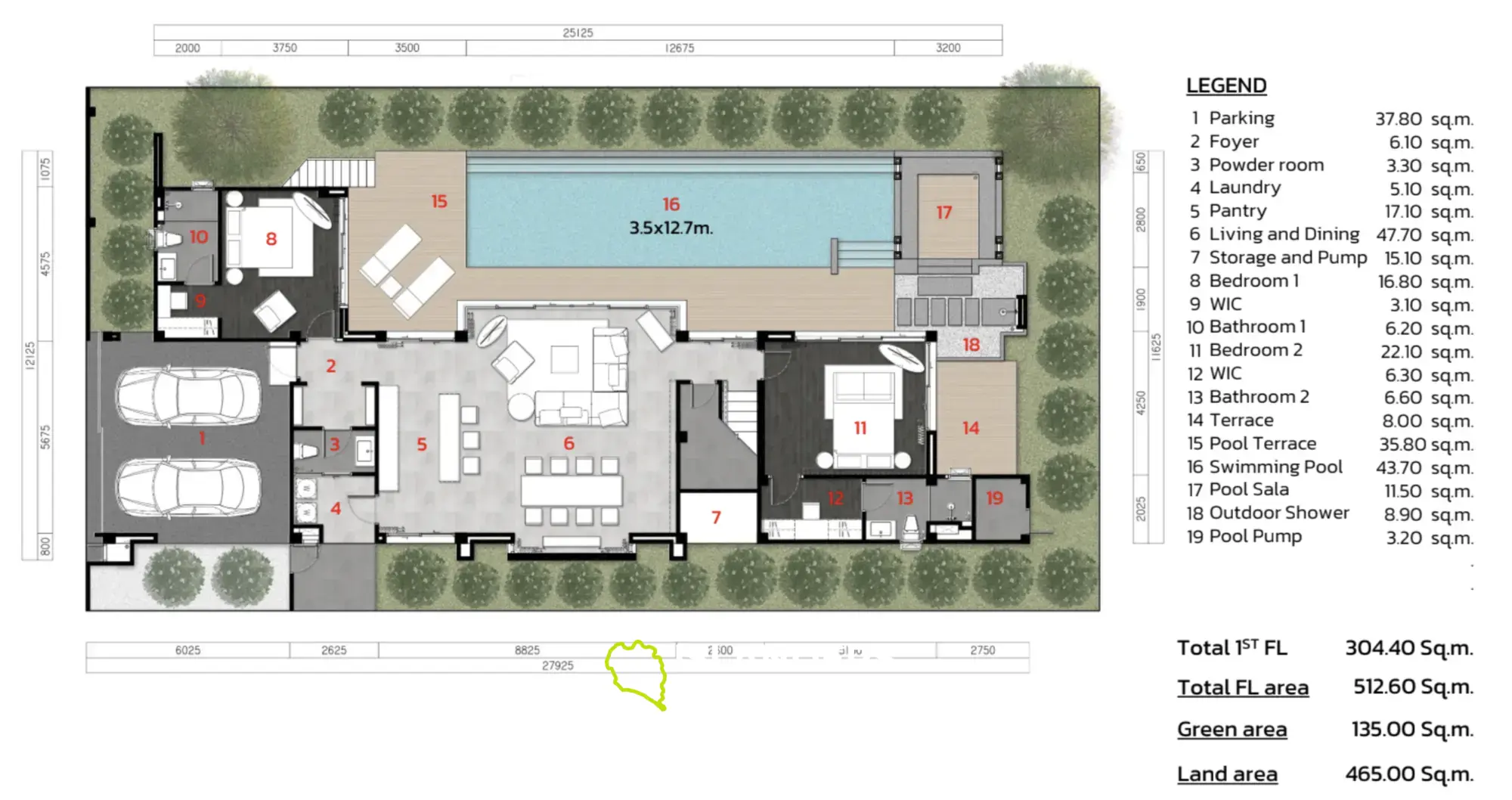 This luxurious villa is currently completed. With a generous building area of 512 m² and a terrace area of 36 m², this property offers ample space for relaxation and entertainment.