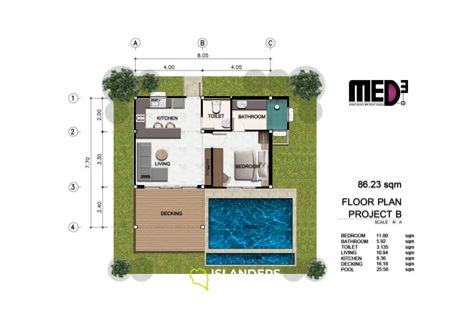 تتميز هذه الفيلا قيد الإنشاء بمساحة داخلية واسعة تبلغ 42.6 م²، مصممة بجمالية مستوحاة من الثقافة الآسيوية التي تتناغم مع الطبيعة المحيطة بها. تحتوي الملكية على تشطيبات خشبية رائعة، مما يوفر جوًا دافئًا وجذابًا.