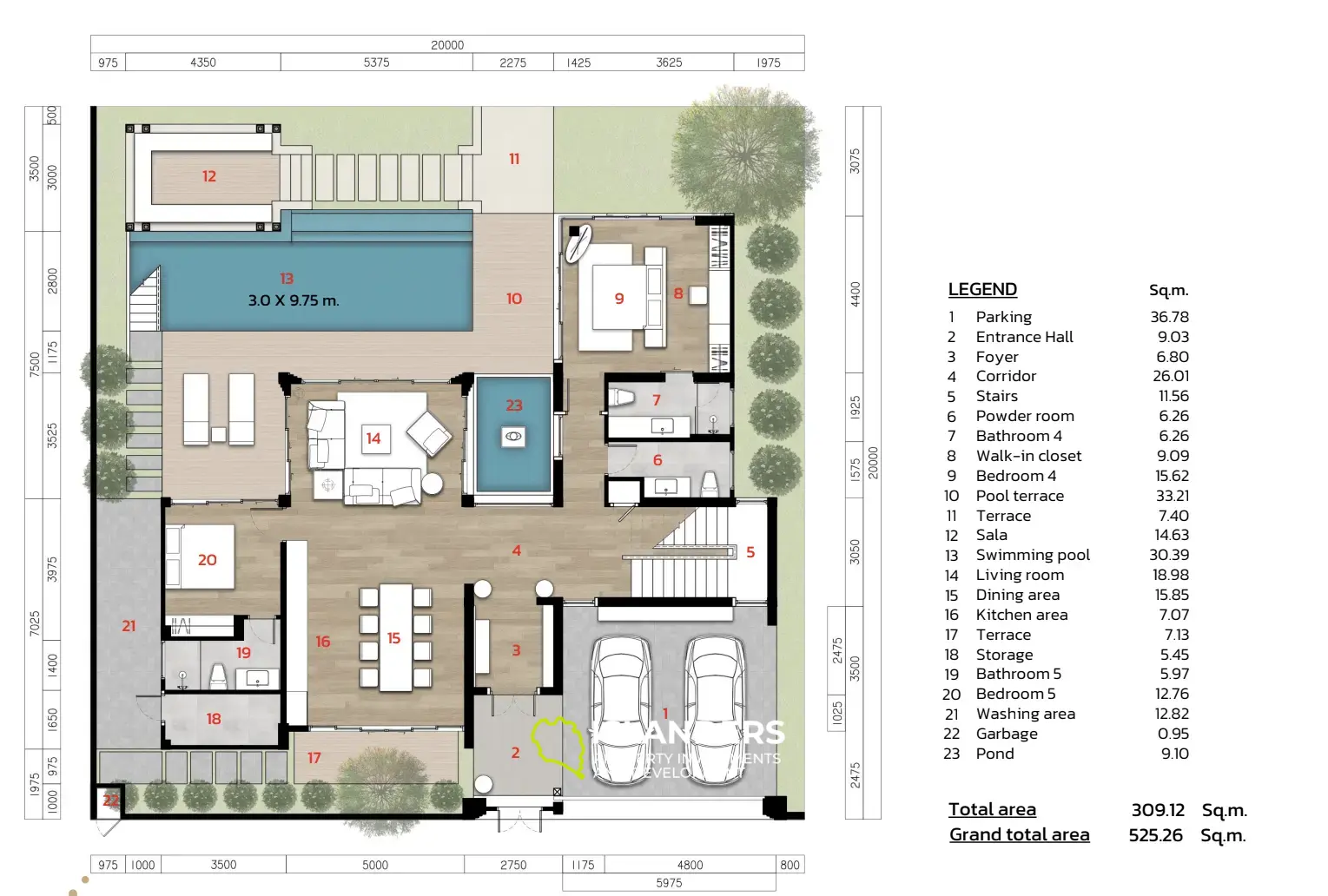 Step outside to find your own private oasis, complete with a beautifully designed pool spanning 30 m². The villa is situated on a generous land plot of 492 m², ensuring 100% privacy while providing a serene environment to unwind.
