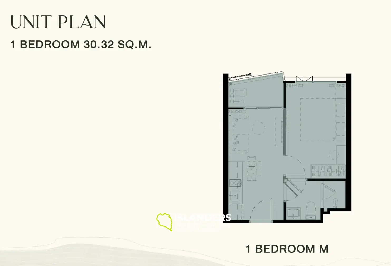 • 1 Bedroom M: 30.32 – 30.98 sq.m., 3.09 – 4.52 million THB
