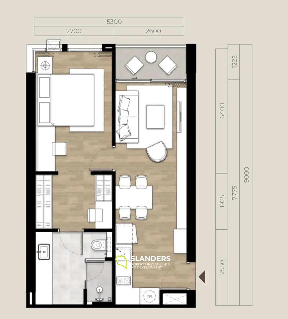 • Frais de copropriété : 50 THB/m²/mois (payés un an à l'avance)