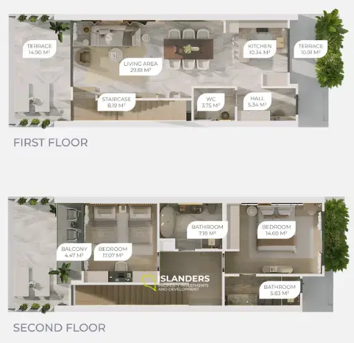 בהרחבת חוויית המגורים החיצונית, מרפסת של 19.88 מ² נפתחת לבריכה פרטית של 16.94 מ² מוקפת בצמחייה שופעת — מקום אידיאלי לקפה של בוקר, שיזוף אחר הצהריים, או רגיעה שקטה בערב.