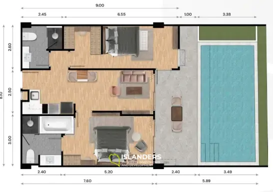 賃貸収益やバケーション滞在に最適なコンパクトかつ効率的なレイアウト。