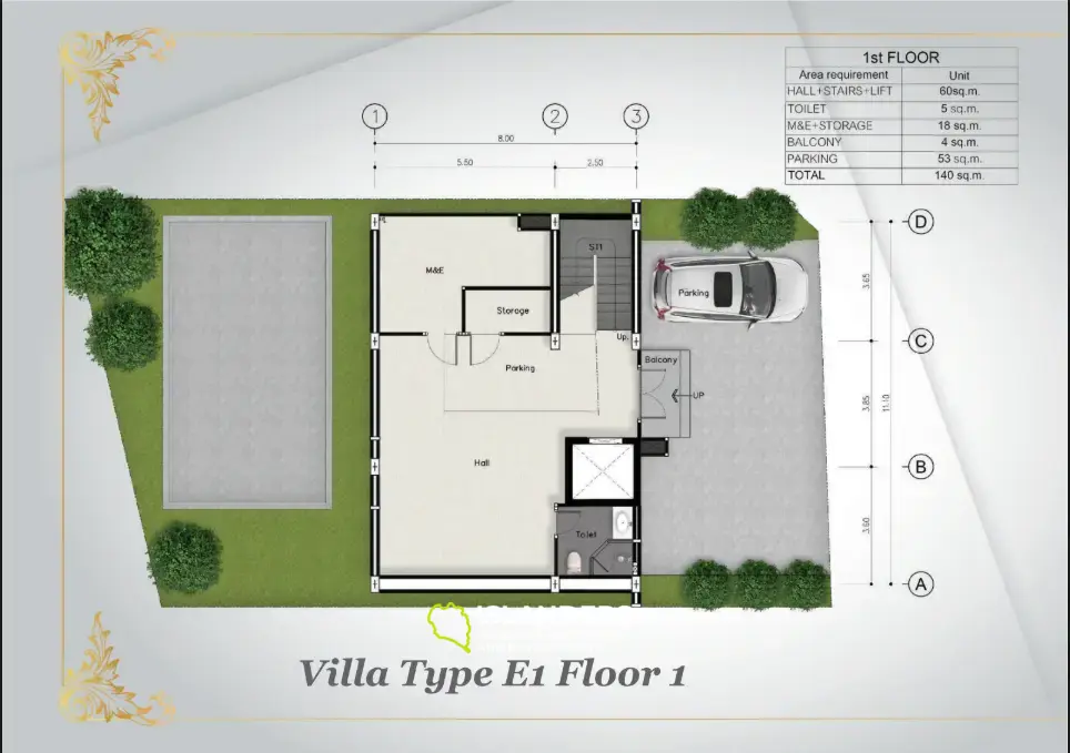 この美しいヴィラは、5つの広々としたベッドルームと7つの豪華なバスルームを備え、家族やゲストに十分なスペースを提供します。建物面積は800平方メートルで、リラクゼーションとエンターテイメントの両方を考慮した設計です。