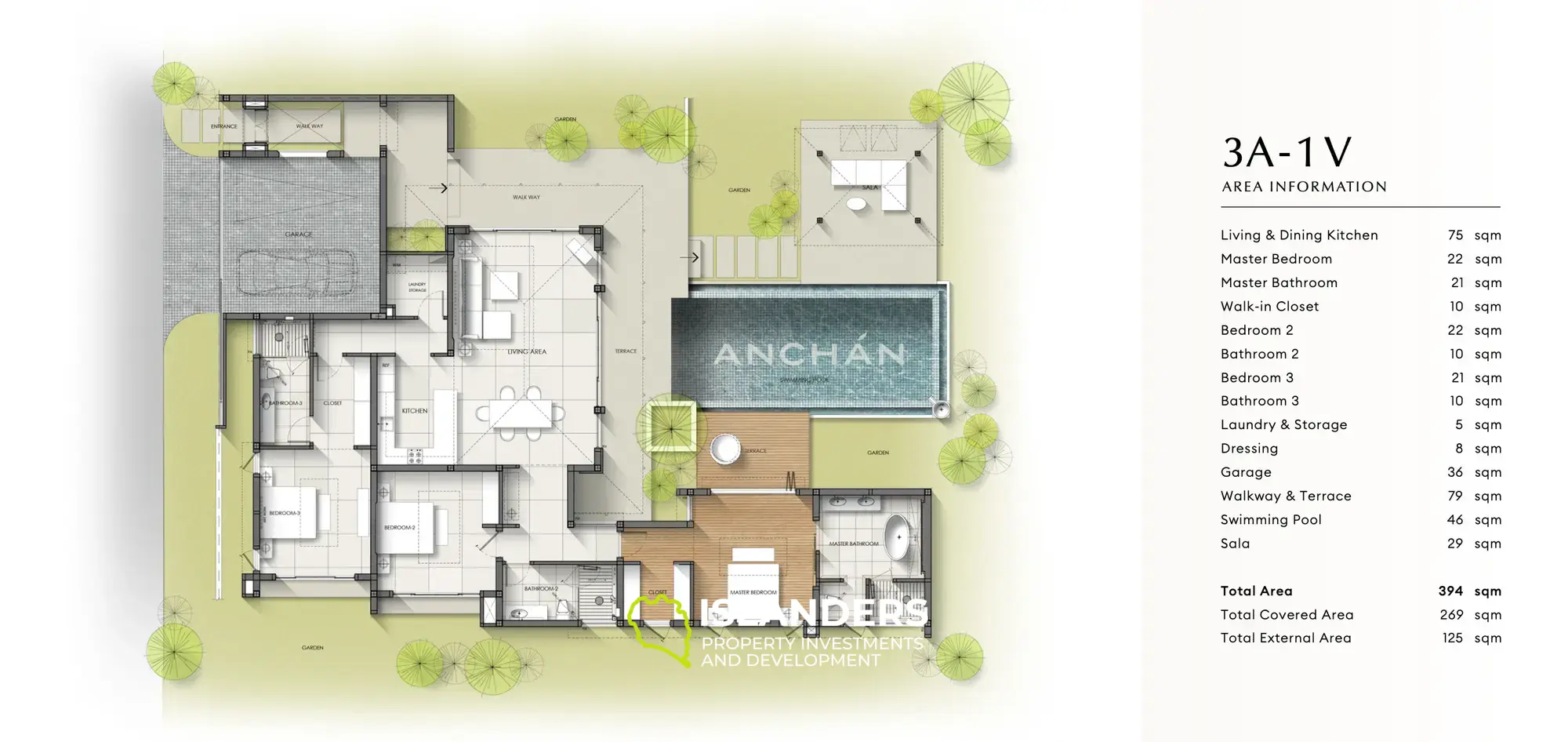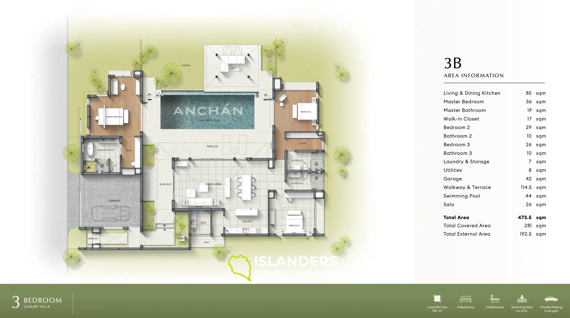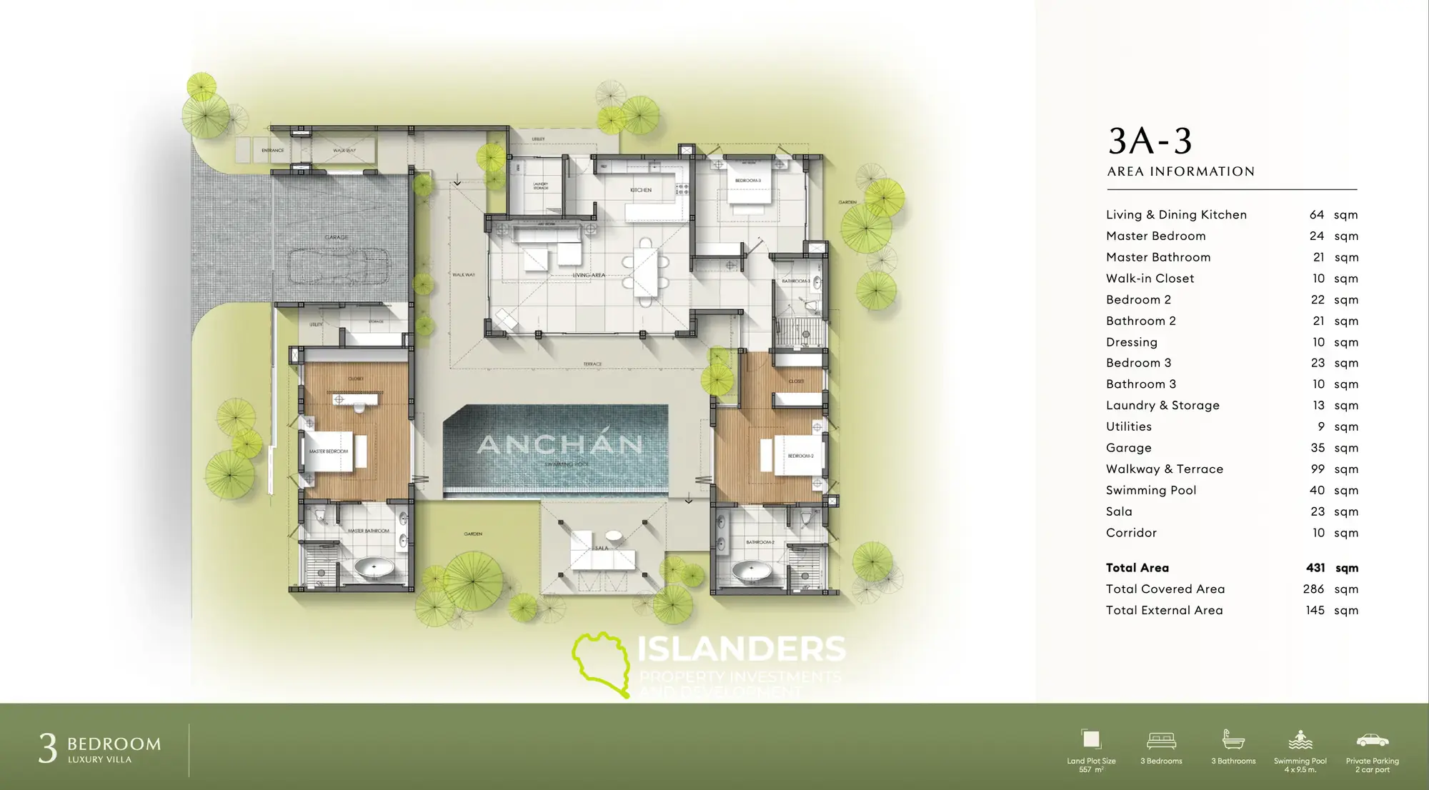 • Villa Type: 3-bedroom luxury villa, Plan (3B 1P)