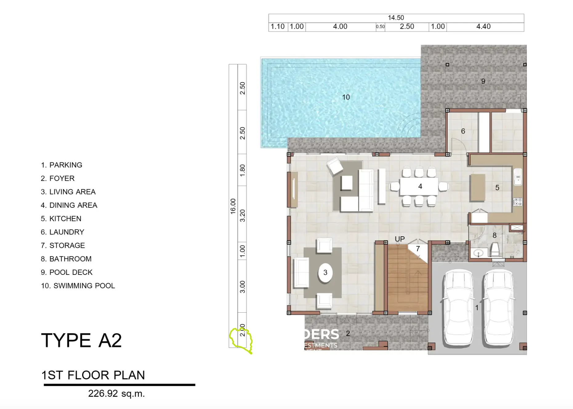Features: private swimming pool, garden, spacious living and dining area, European kitchen, master bedroom with walk-in closet and bathtub, parking for 2 cars.