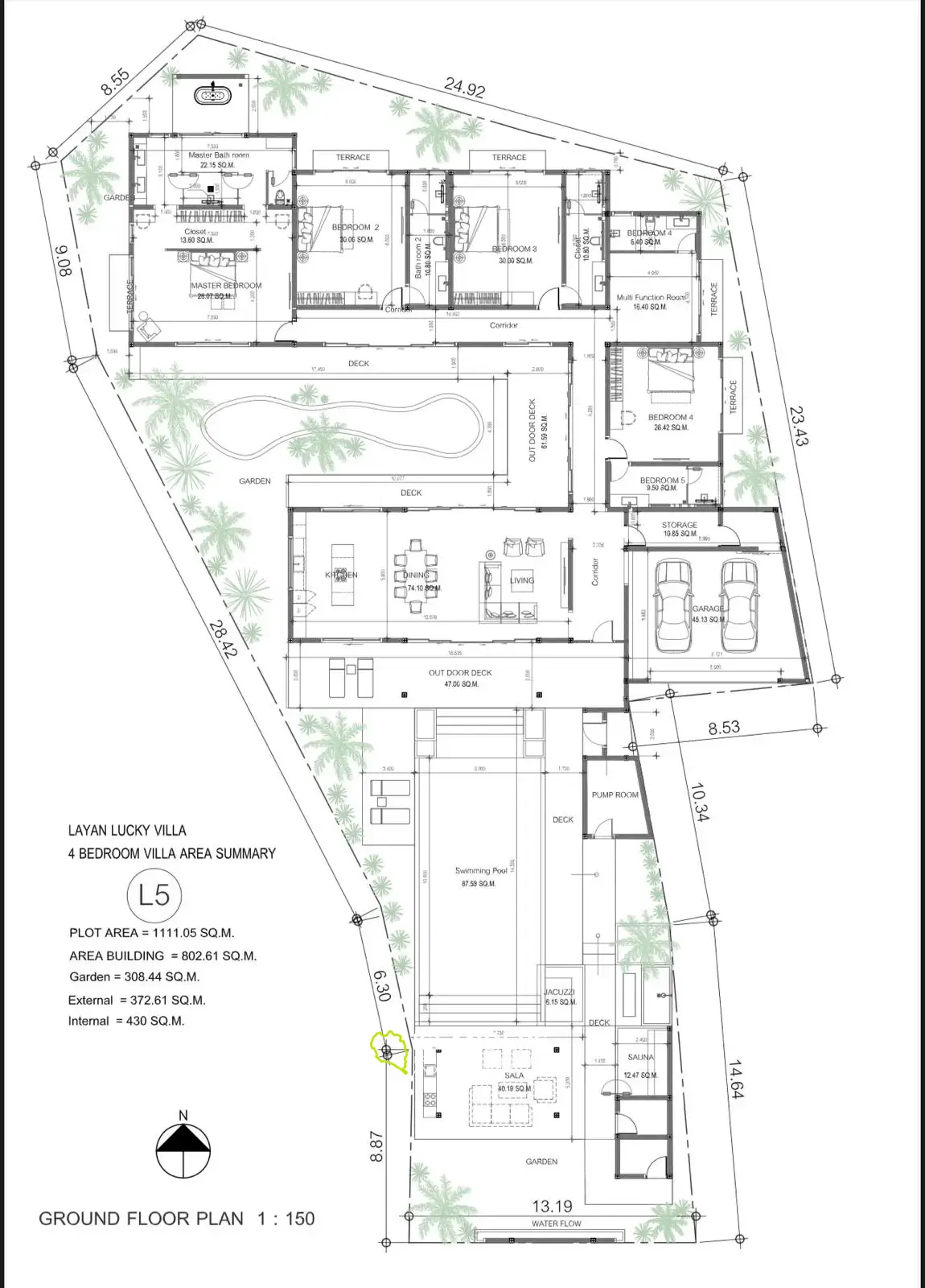 This high-end villa is currently on plan and is set for completion in 2026. With a spacious building area of 803 m² and a luxurious interior of 430 m², this home is designed for comfort and style. The villa boasts a big terrace of 373 m², perfect for entertaining guests or enjoying the stunning views.