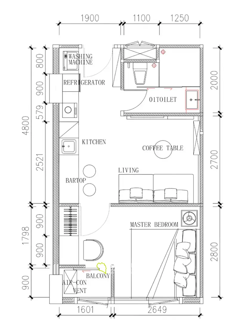 Мебельный пакет частично не включен в стоимость квартиры и может быть приобретен отдельно за 350,000 бат.