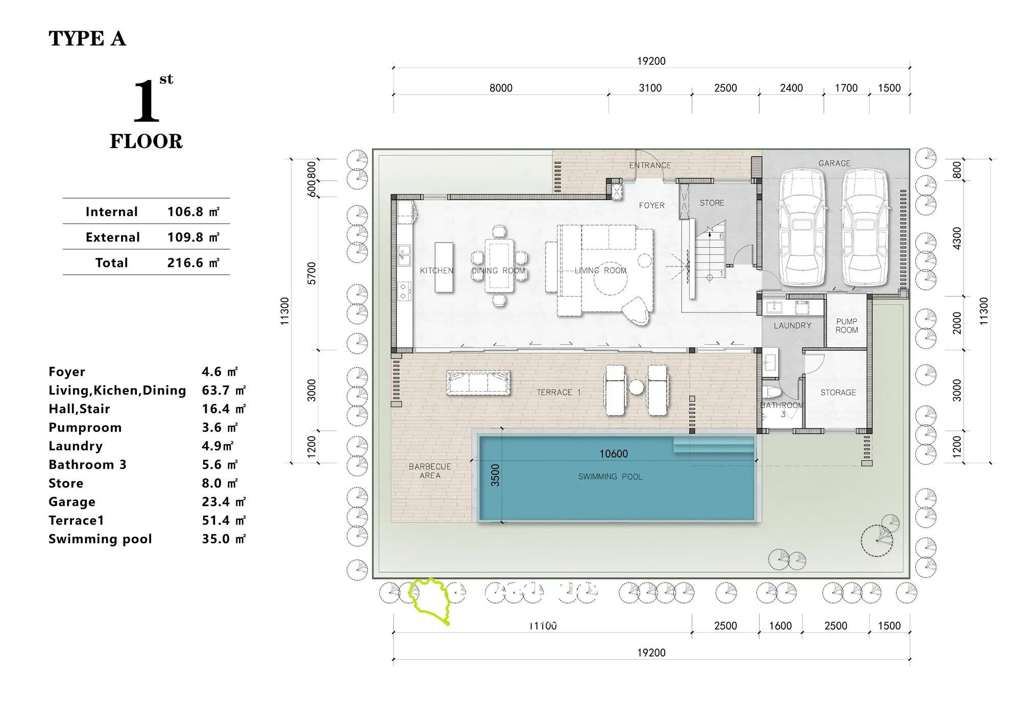 Проект находится на стадии планирования, завершение строительства ожидается в третьем квартале 2027 года. Каждая вилла предлагает от 3 до 5 спален, с площадью от 351 до 691 кв. м и земельными участками от 347 до 754 кв. м. Цены начинаются от примерно 28–30 миллионов бат за виллу с 3 спальнями (Тип A, 351 кв. м).
